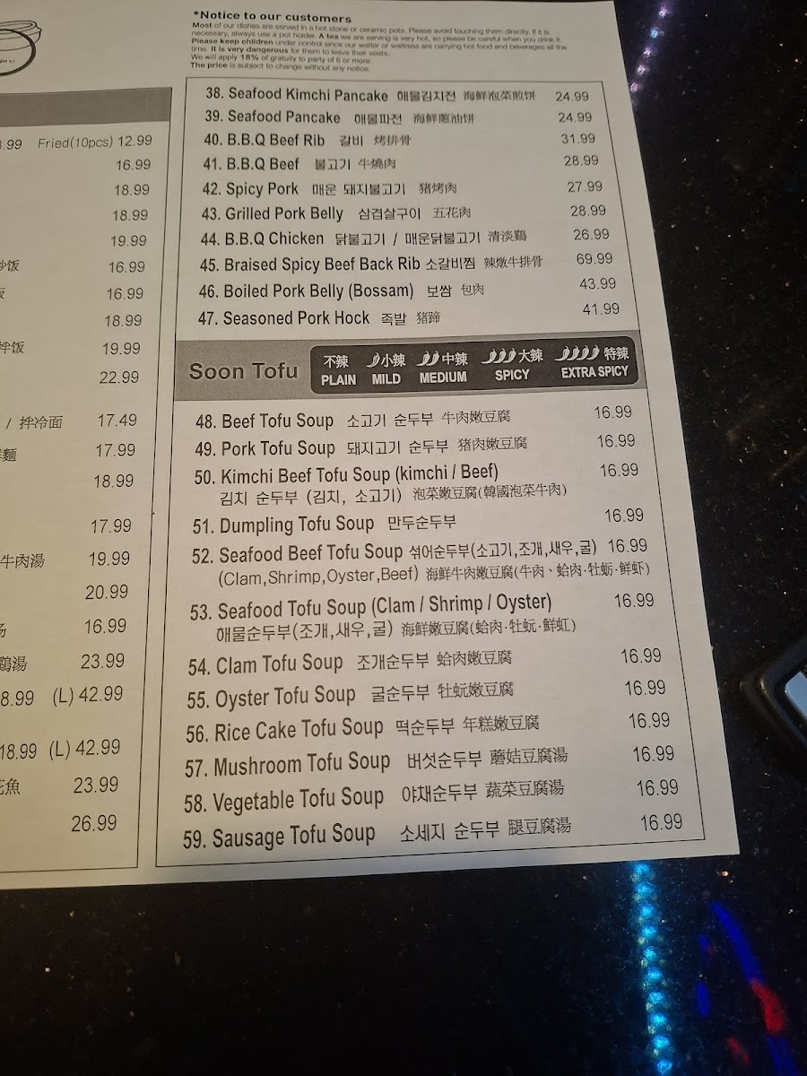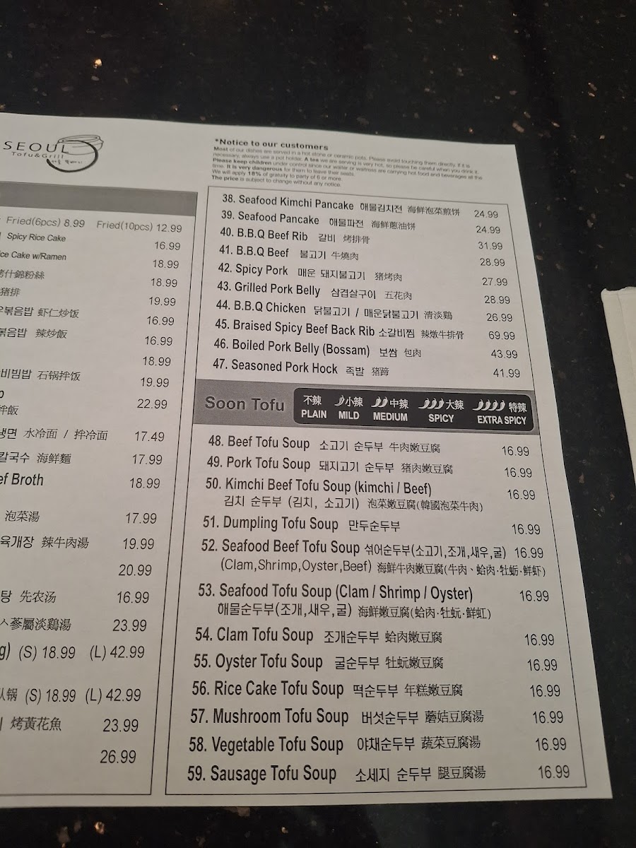 pork belly, onion, green onion, soft tofu soup of your choice