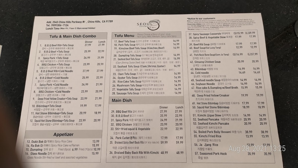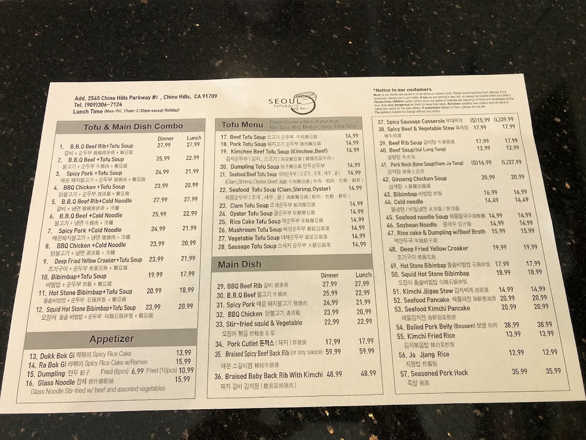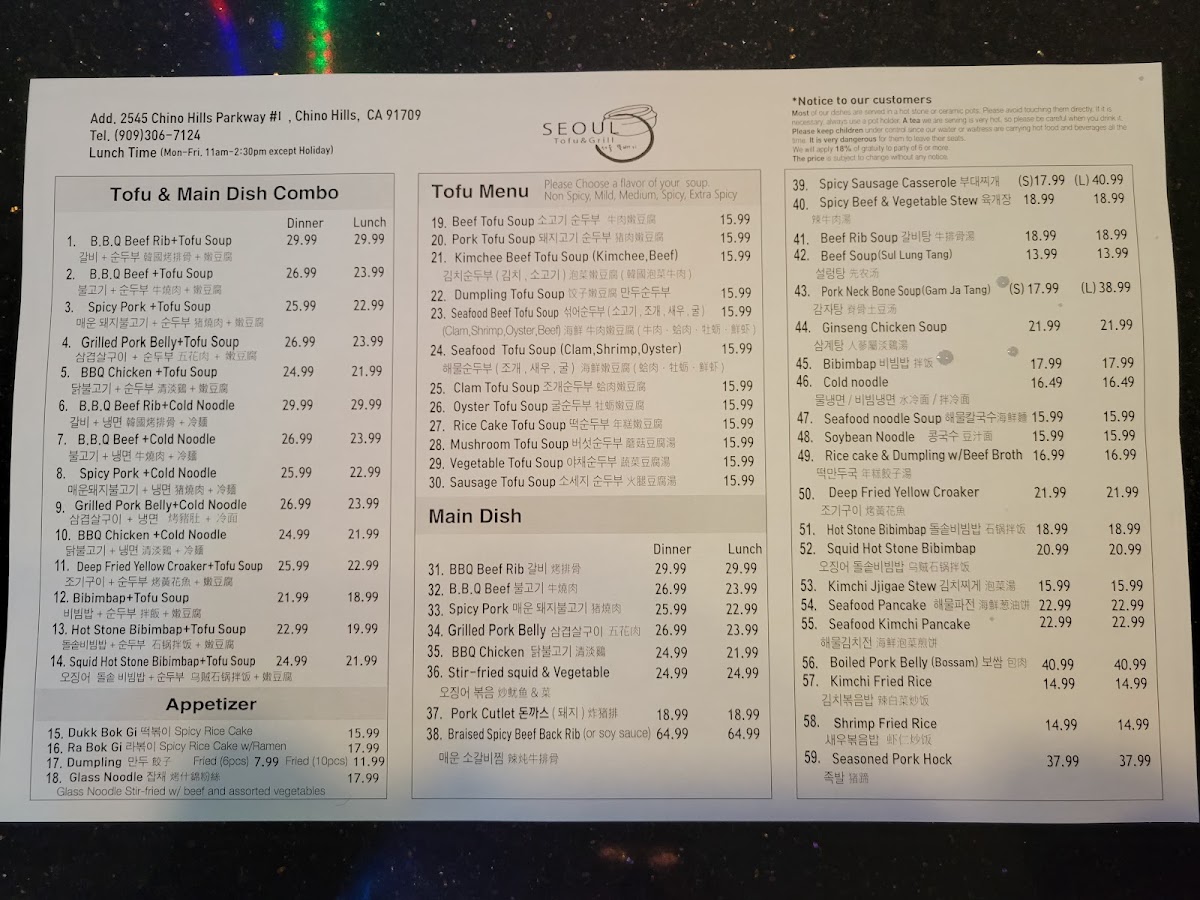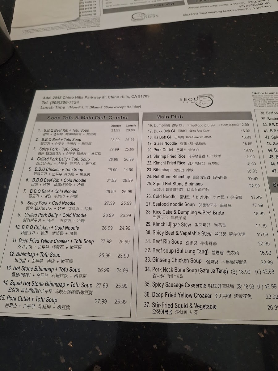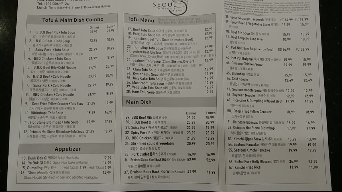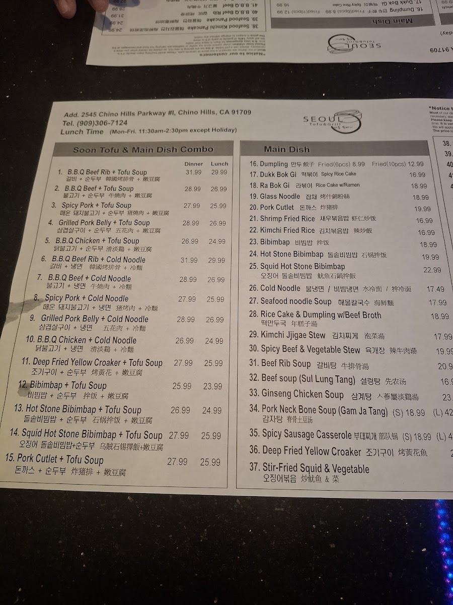 1. B.B.Q Beef Rib+ Tofu Soup 갈비 순두부 콤보